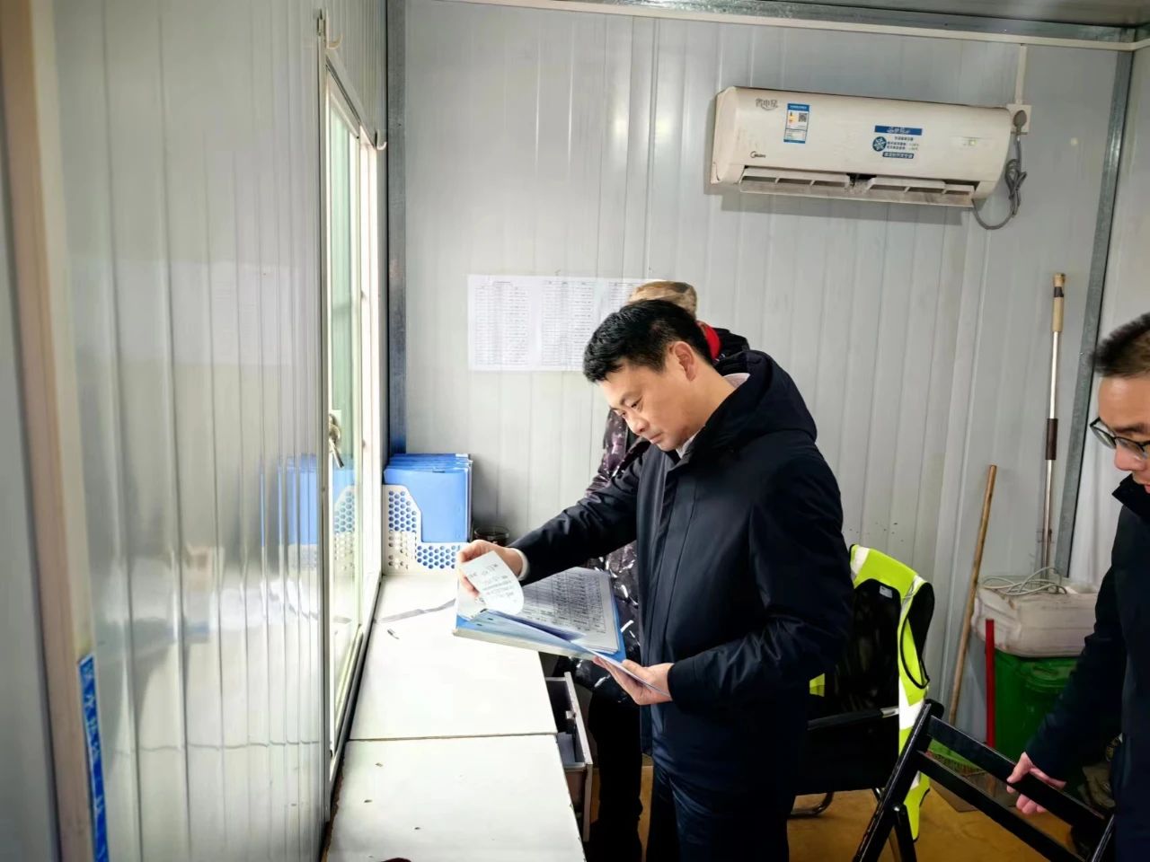 张人富来到中心城区垃圾运输车辆检查点,翻阅了垃圾运输车辆检查工作记录台账,询问了车辆检查的流程,叮嘱值守人员认真履职,监管好垃圾运输车辆,严禁出现“跑、冒、滴、漏”现象。