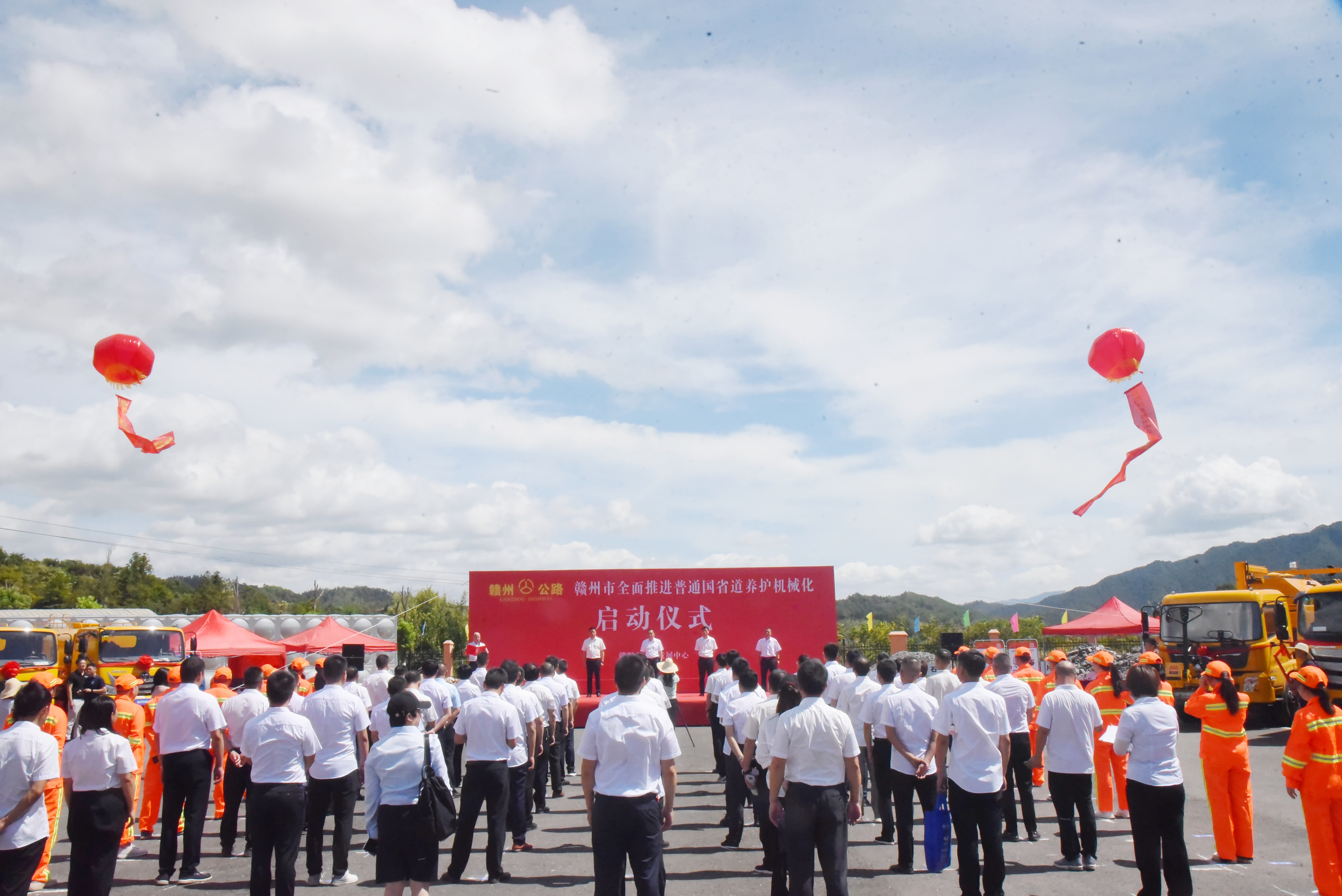 市公路发展中心党组书记刘晓龙宣布365bet线上娱乐_Best365官网登录_正规beat365app全面推进普通国省道养护机械化正式启动,市中心主任胡烈讲话,市中心党组成员、副主任刘自田主持,于都县委常委钟财亮,市中心党组成员、副主任黄志强出席活动。市中心相关科室负责同志,路投集团公司班子成员,各公路分中心主要领导、分管领导和有关部门负责同志,相关设备生产厂商及供应商代表共计100余人参加活动。