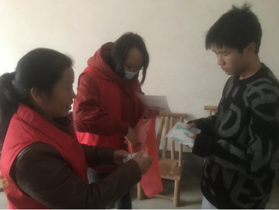 开展好安全检查.驻村工作队组织村妇女联合会、志愿者为对其困难家庭免费发放防疫物资,共发放100余份“防疫健康包”,里面包含有此口罩,感冒药、退烧药,消毒液等药品和防疫物资,志愿者们还给家长和儿童普及了防疫知识,叮嘱他们外出佩戴好口罩、勤洗手、家中勤通风,进一步做好解封后防范疫情宣传工作,树立“每个人是自己健康第一责任人”的观念,进一步提高自我防护能力。