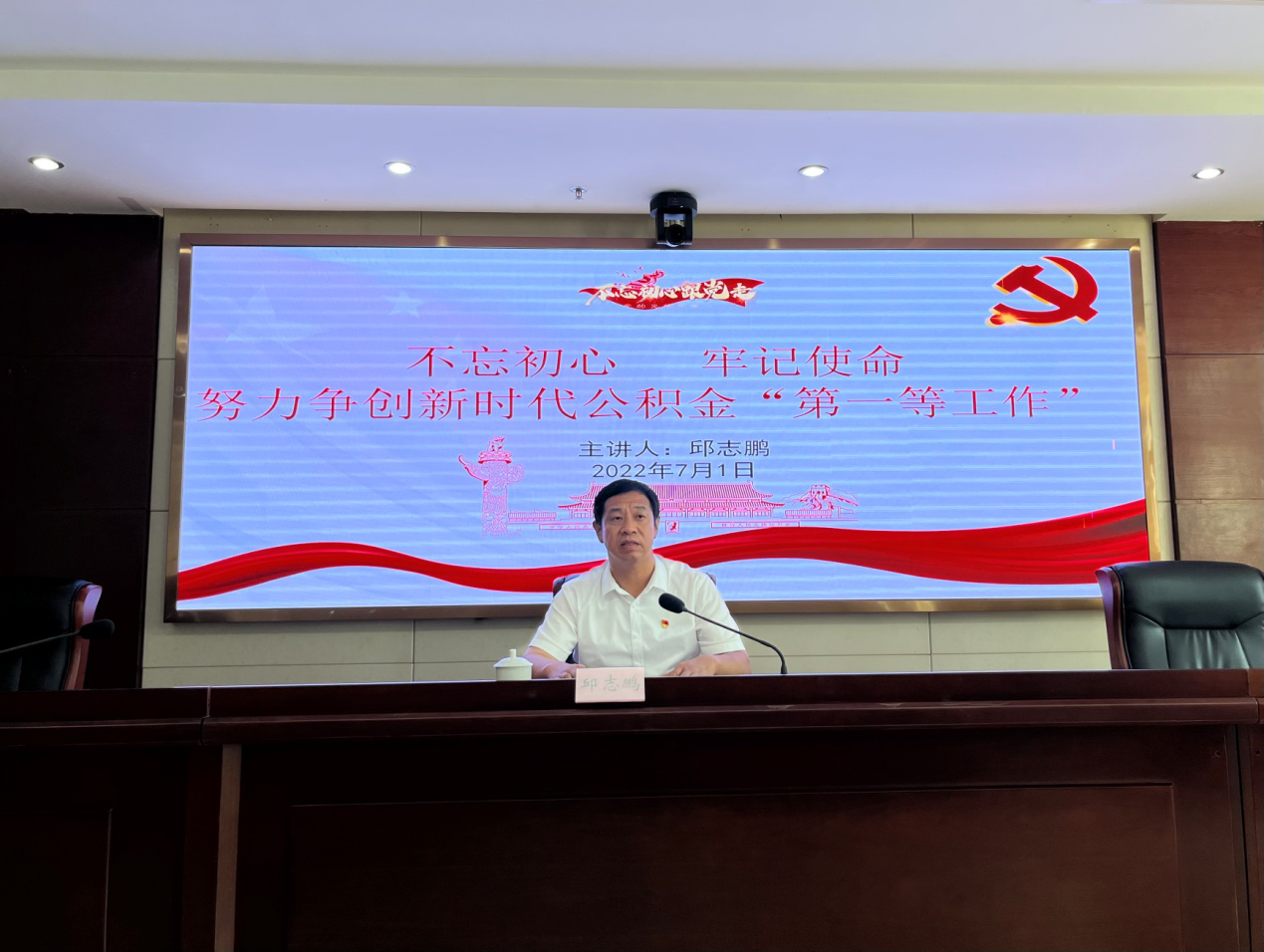 2022年7月1日,在党的101周年华诞之际,市政府副秘书长邱志鹏同志深入365bet线上娱乐_Best365官网登录_正规beat365app住房公积金管理中心机关开展党建工作调研,并为机关全体党员干部上“七一”专题党课。